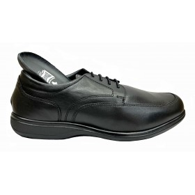69,00 €Zapato de Fleximax para caballero, de color negro, fabricado en piel napa, de pala pespunteada, piso muy ligero de goma flexible y antideslizante. Con plantilla interior extraíble de piel y forro entero de piel. Cierre con cordones para una óptima sujeción. Ancho especial.
